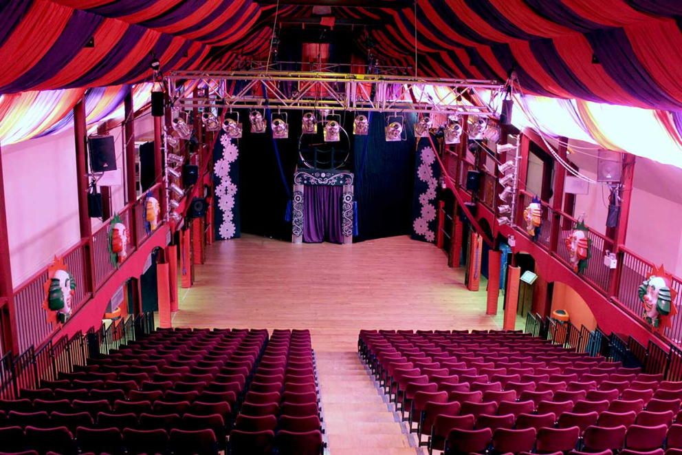 The Theatre is designed in a circus theme, making it an ideal space for a variety of creative events.