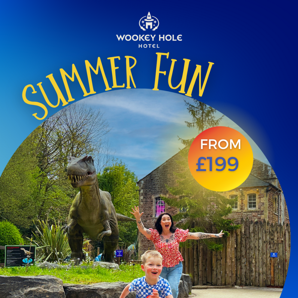 As sunshine spills over the Mendip Hills, Wookey Hole awakens in full summer splendour—ready to whisk you away on a day of unforgettable adventure! Let golden rays guide you through caves, the lush valley, and the roaring dinosaur den. You may even get to meet the legendary Witch herself.